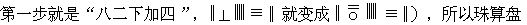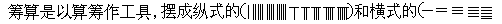 民创造的,但是印度在公元三世纪以前使用的记数法是希腊式和罗马式两种,都不是位值制,真正使用十进位值制记数法出现在公元六世纪末。由此可见,我国古代的十进位值制记数法和筹算,在世界数学史上应该占有重要的地位。 筹算在我国古代用了大约两千年,在生产和科学技术以至人民生活中,发挥了重大的作用。但是它的缺点也是十分明显的:首先,在室外拿着一大把算筹进行计算就很不方便;其次,计算数字的位数越多,所需要的面积越大,受环境和条件的限制;此外,当计算速度加快的时候,很容易由于算筹摆弄不正而造成错误。随着社会的发展,计算技术要求越来越高,筹算需要改革,这是势在必行的。这个改革从中唐以后的商业实用算术开始,经宋元出现大量的计算歌诀,到元末明初珠算的普遍应用,历时七百多年。《新唐书》和《宋史·艺文志》记载了这个时期出现的大量著作。由于封建统治阶级对民间数学十分轻视,以致这些著作的绝大部分已经失传。从遗留下来的著作中可以看出,筹算的改革是从筹算的简化开始而不是从工具改革开始的,这个改革最后导致珠算的出现。 珠算是由筹算演变而来的,这是十分清楚的。筹算数字中,上面一根筹当五,下面一根筹当一,珠算盘中的上一珠也是当五,下一珠也是当一;由于筹算在乘、除法中出现某位数字等于十或多于十的情形(例如26532÷8,